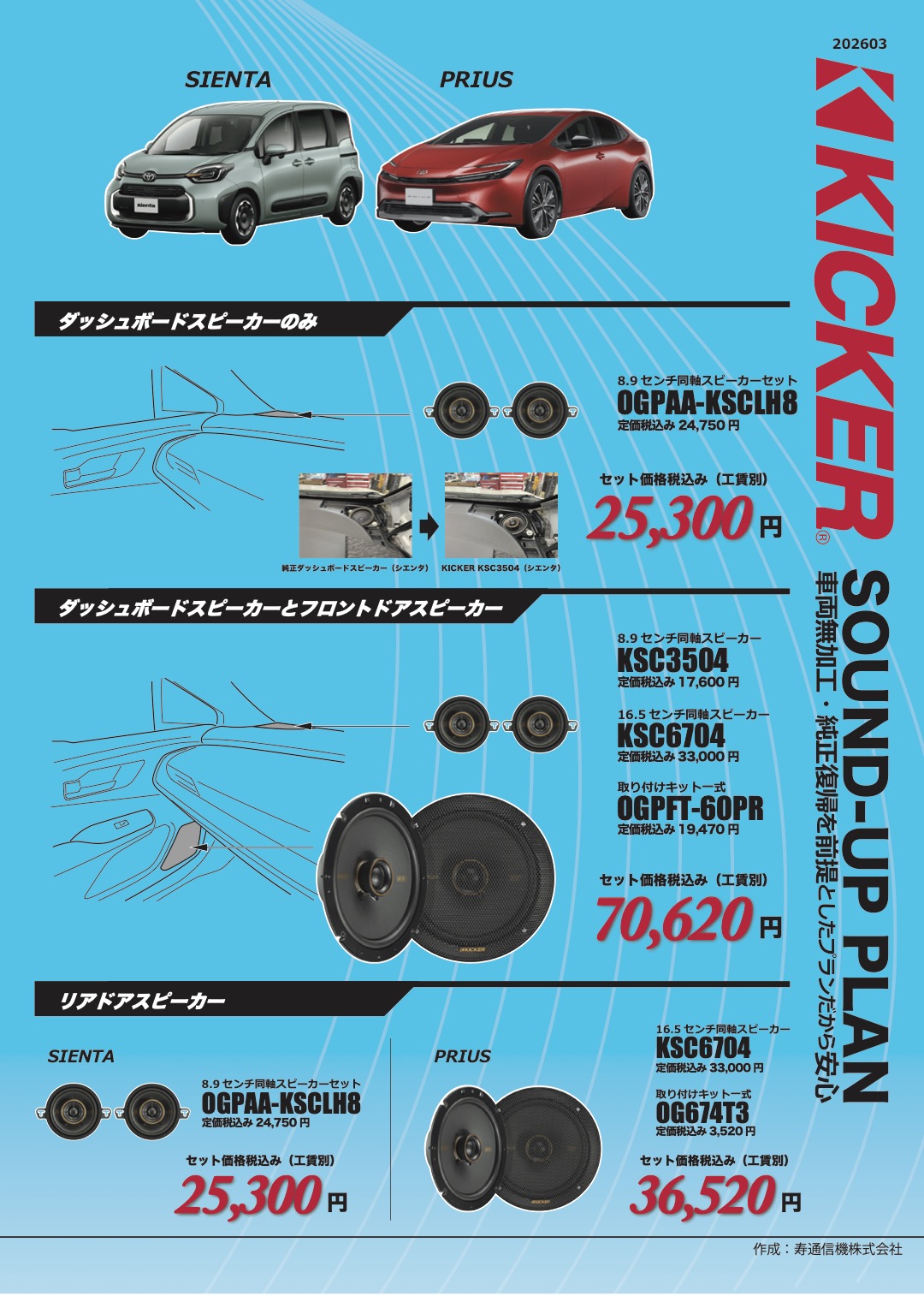 キッカーサウンドアッププラン トヨタ シエンタ(10系)プリウス(60系)