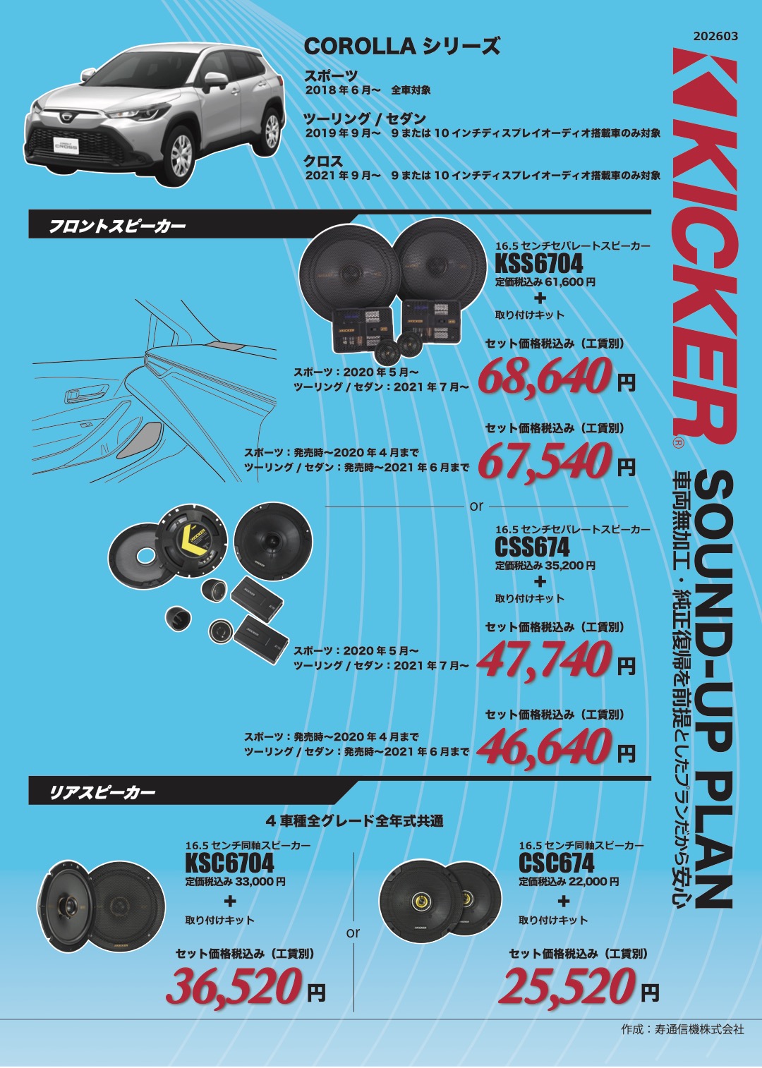 キッカーサウンドアッププラン トヨタ カローラシリーズ
